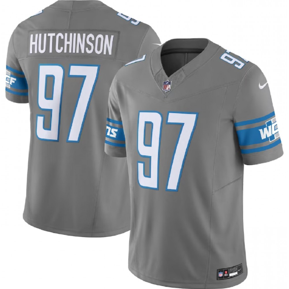Men's Detroit Lions #97 Aidan Hutchinson Grey 2023 F.U.S.E. Vapor Untouchable Limited Stitched Jersey