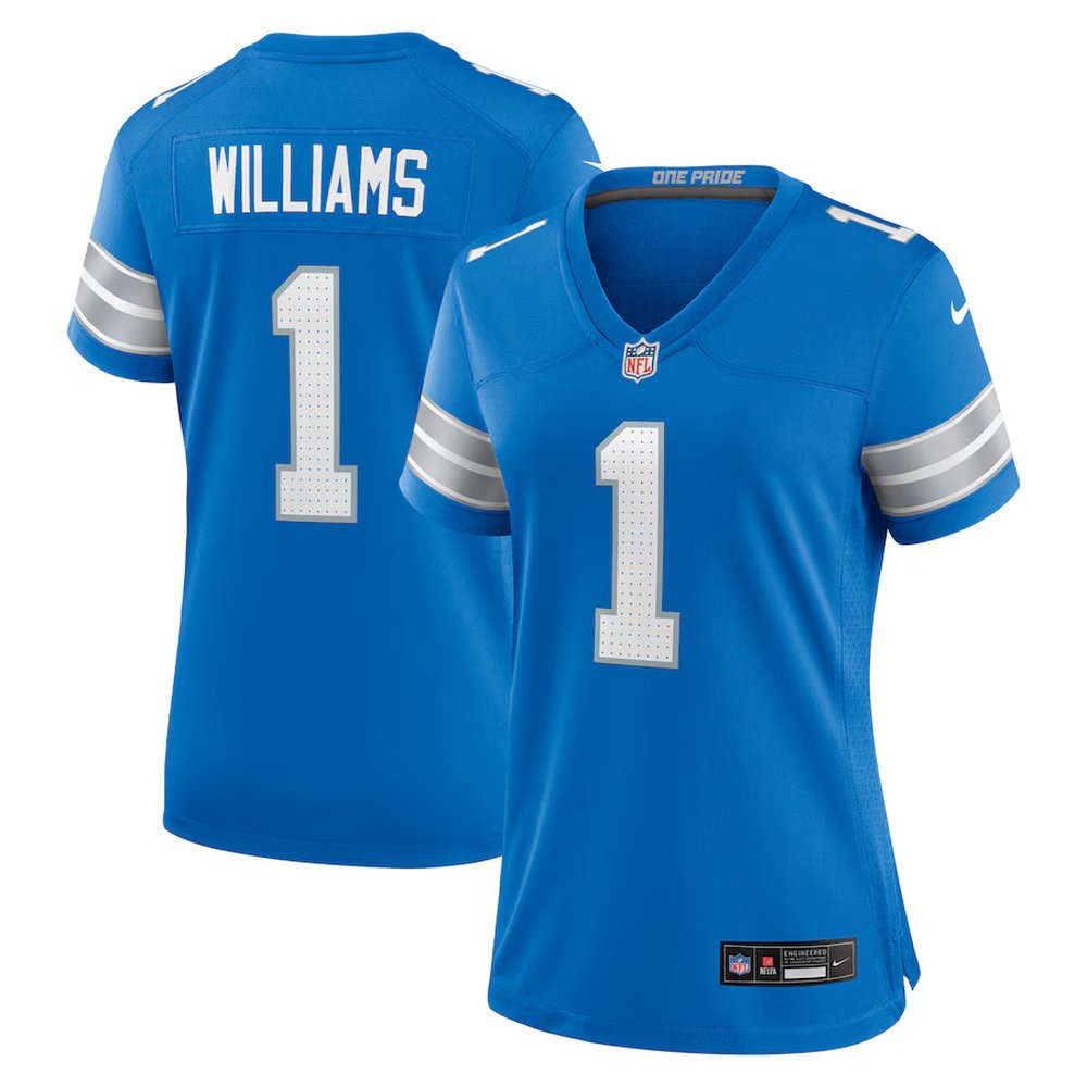 Women's Detroit Lions #1 Jameson Williams Blue 2025 F.U.S.E. Vapor Limited Stitched Jersey