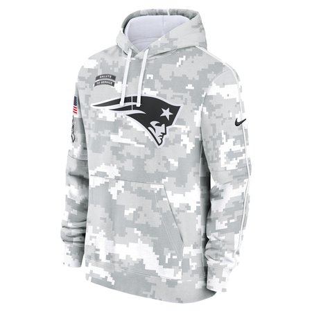 Youth New England Patriots Nike White/Gray 2024 Salute To Service Pullover Hoodie