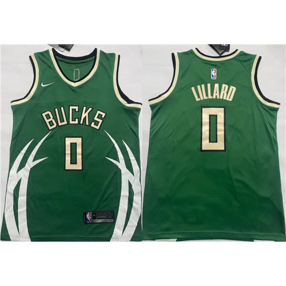 Men's Milwaukee Bucks #0 Damian Lillard Green Icon Edition Stitched Basketball Jersey