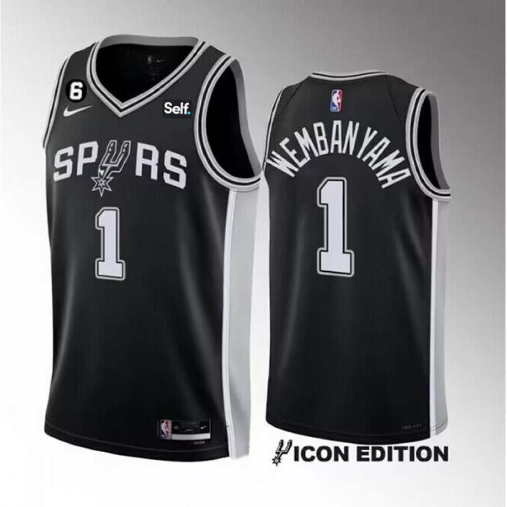 Men's San Antonio Spurs #1 Victor Wembanyama Black 2022/23 Icon Edition With NO.6 Patch Stitched Basketball Jersey