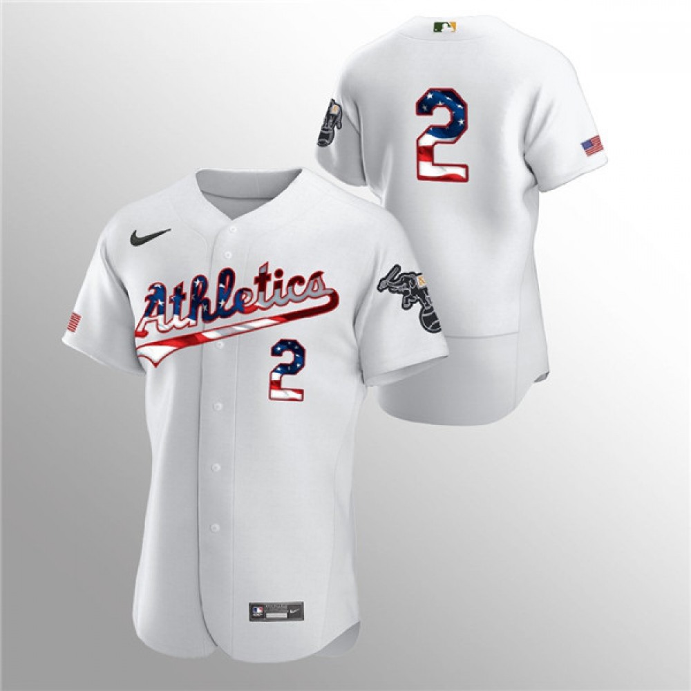 Men's Oakland Athletics #2 Khris Davis White 2020 Stars & Stripes Flex Base Stitched Jersey