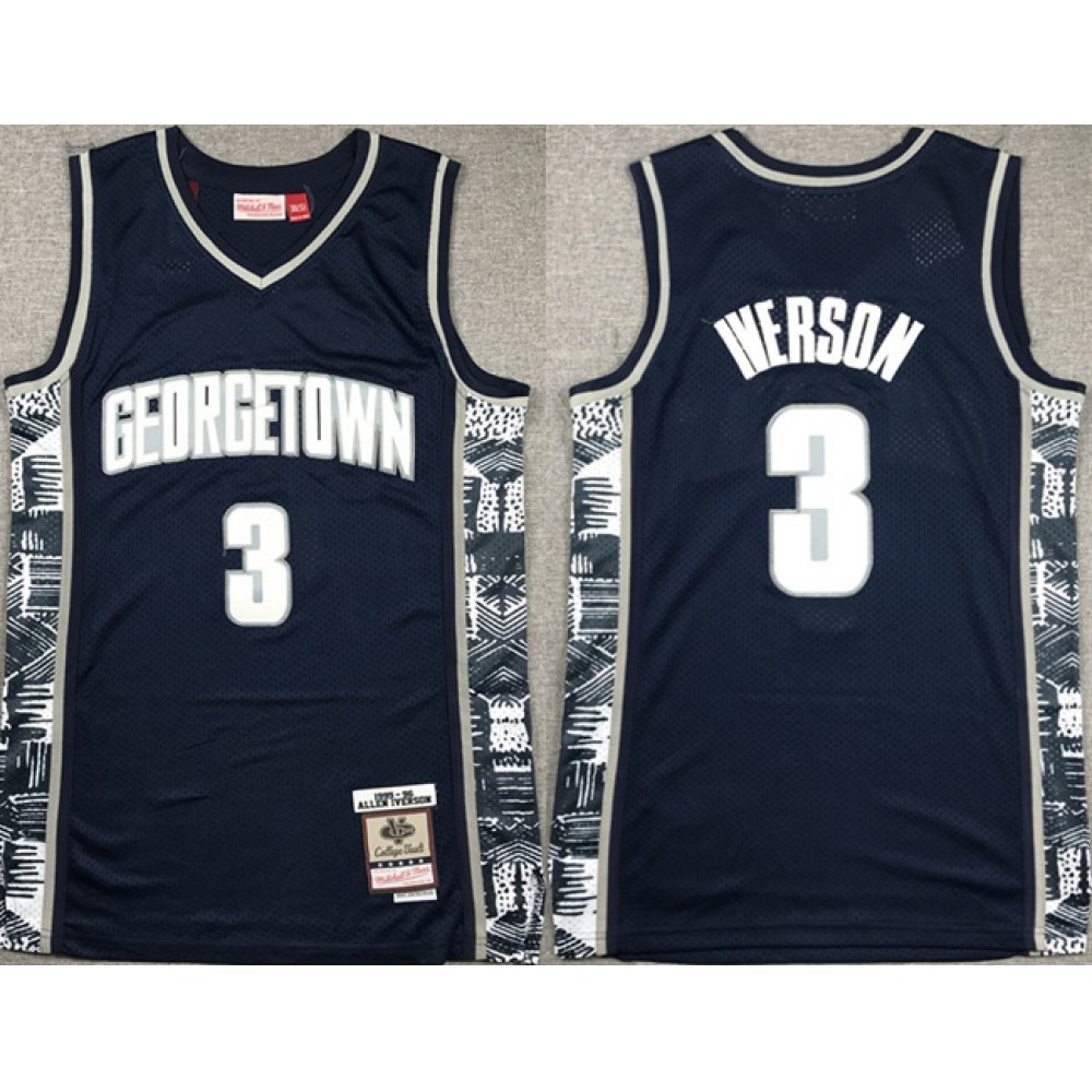 Men's Georgetown Hoyas #3 Allen Iverson Navy Throwback Stitched basketball Jersey