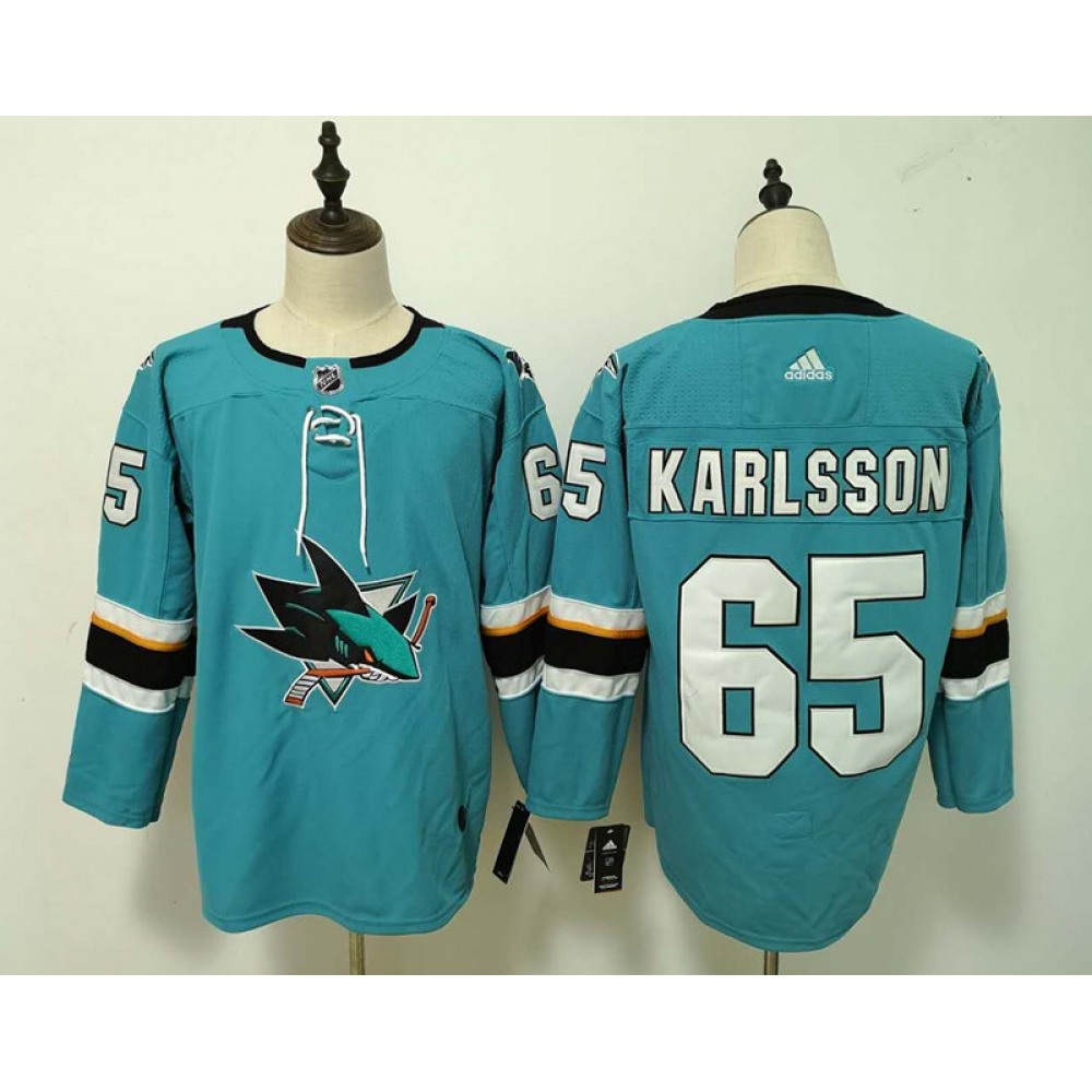 Men's Adidas San Jose Sharks #65 Erik Karlsson Teal Stitched NHL Jersey