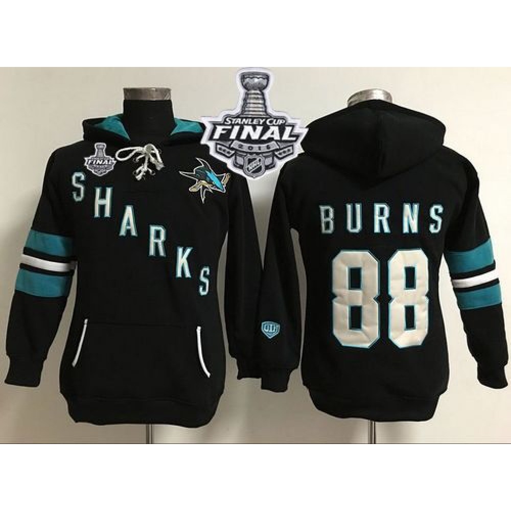San Jose Sharks #88 Brent Burns Black 2016 Stanley Cup Final Patch Women's Old Time Heidi Hoodie NHL Hoodie