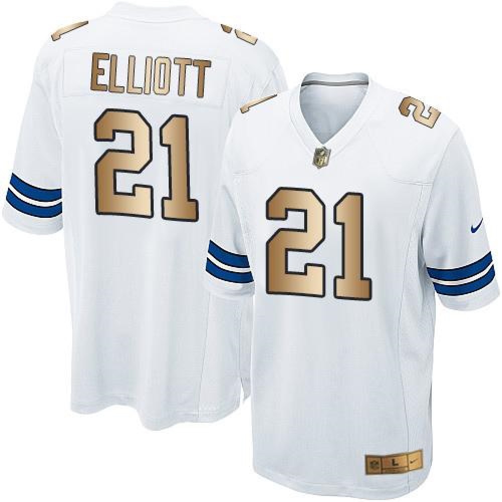 Nike Cowboys #21 Ezekiel Elliott White Youth Stitched NFL Elite Gold Jersey