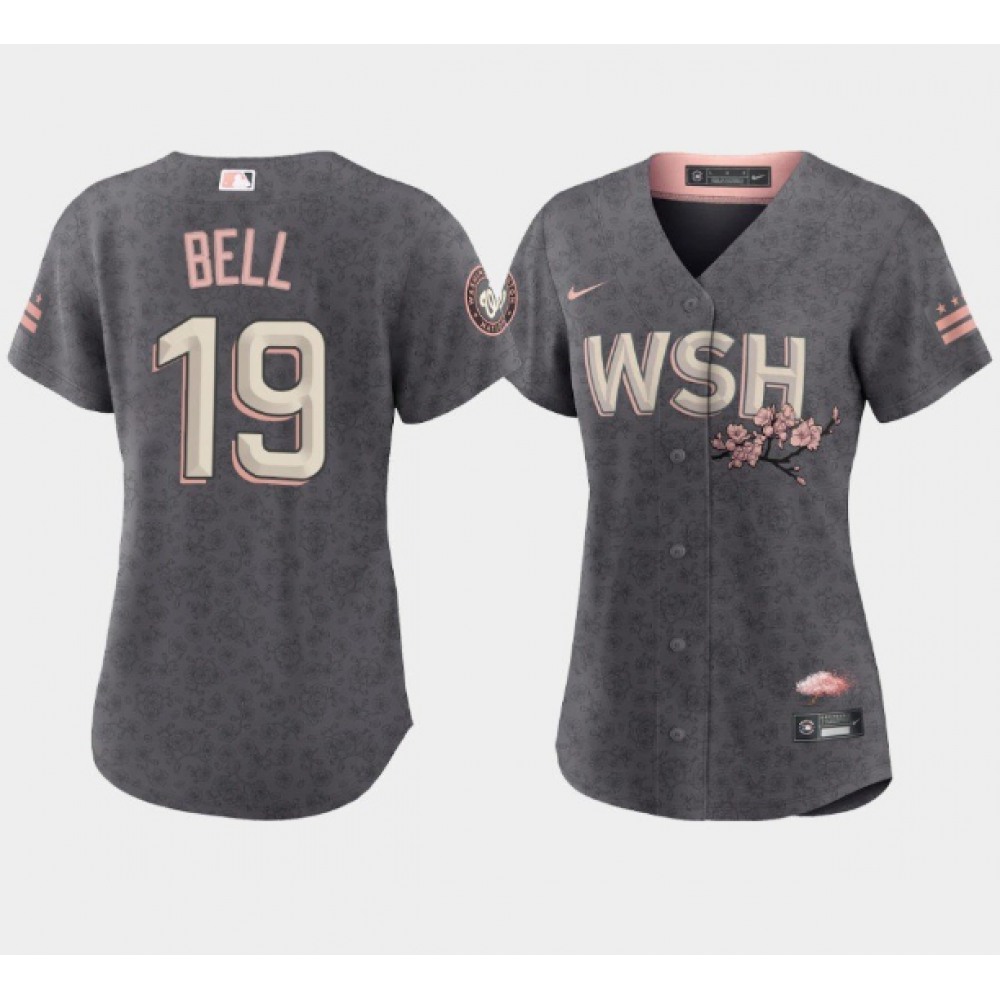 Women's Washington Nationals #19 Josh Bell 2022 Grey City Connect Cherry Blossom Stitched Jersey(Run Small)