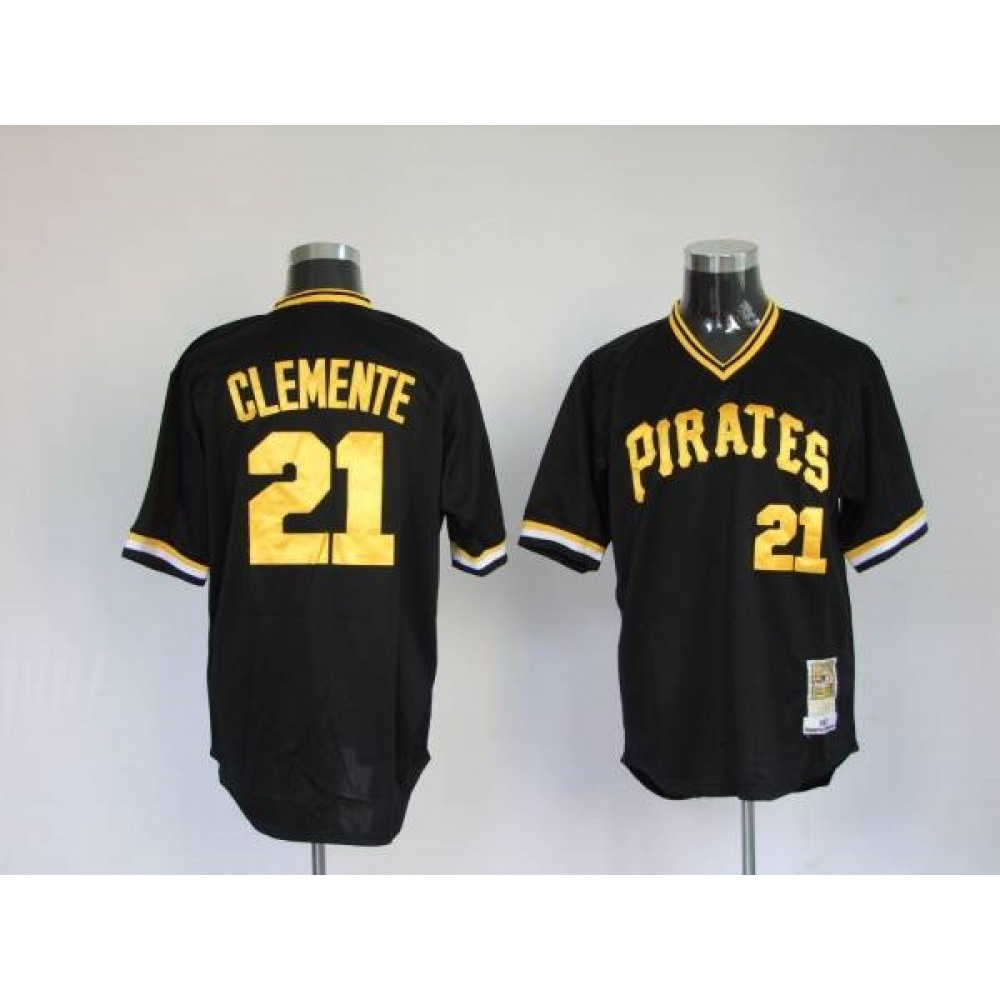 Mitchell and Ness Pirates #21 Roberto Clemente Stitched Black Throwback MLB Jersey