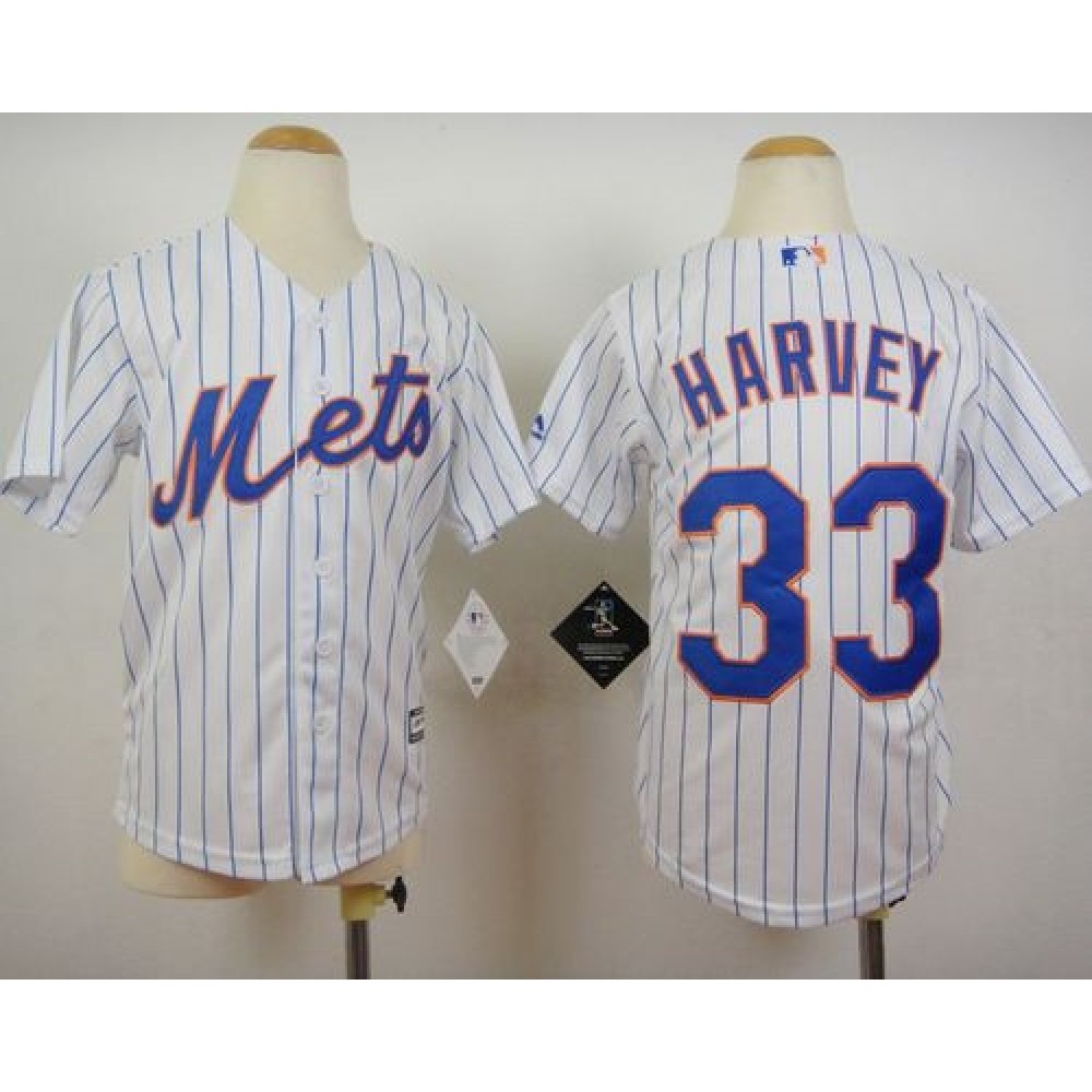 Mets #33 Matt Harvey White(Blue Strip) Home Cool Base Stitched Youth MLB Jersey