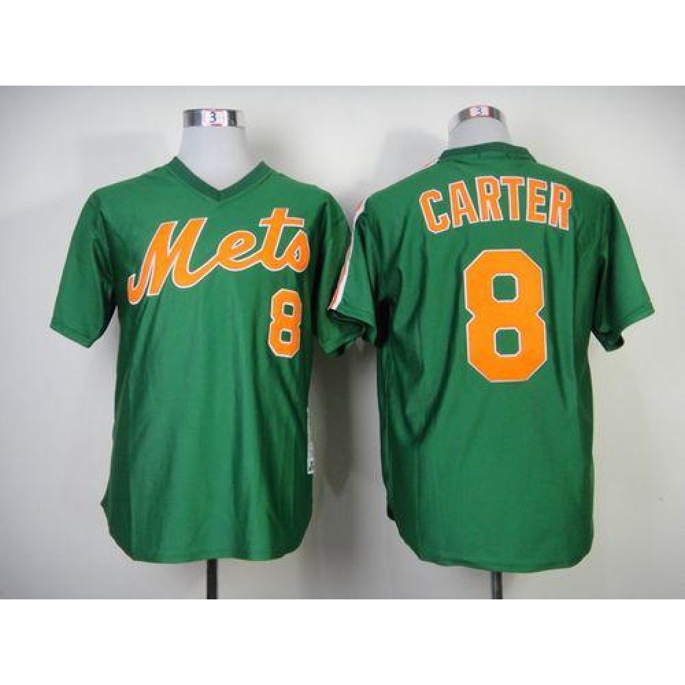 Mitchell And Ness 1985 Mets #8 Gary Carter Green Throwback Stitched MLB Jersey