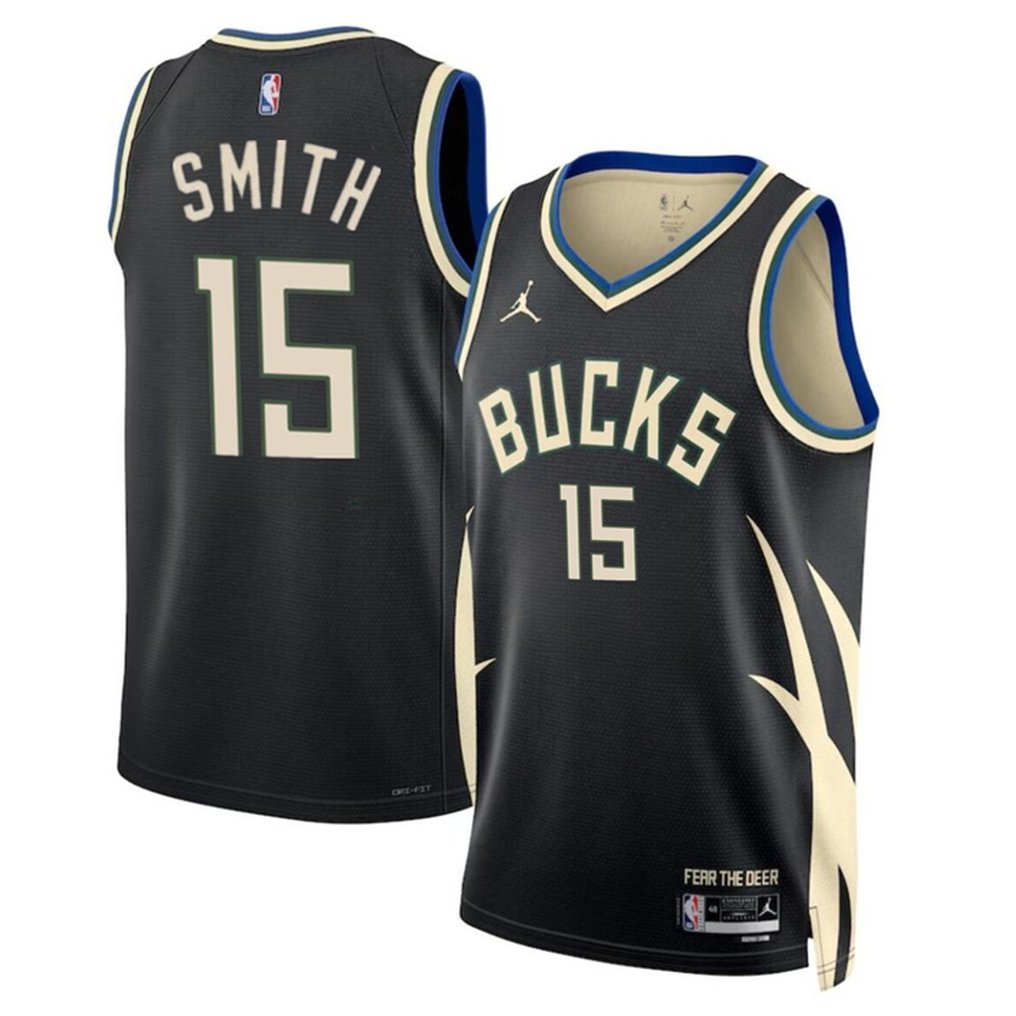 Men's Milwaukee Bucks #15 Tyler Smith Black 2024 Draft Statement Edition Stitched Basketball Jersey