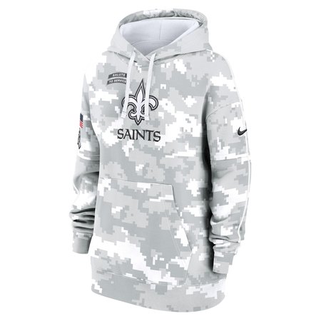 Women's New Orleans Saints Nike Arctic Camo 2024 Salute To Service Club Fleece Pullover Hoodie